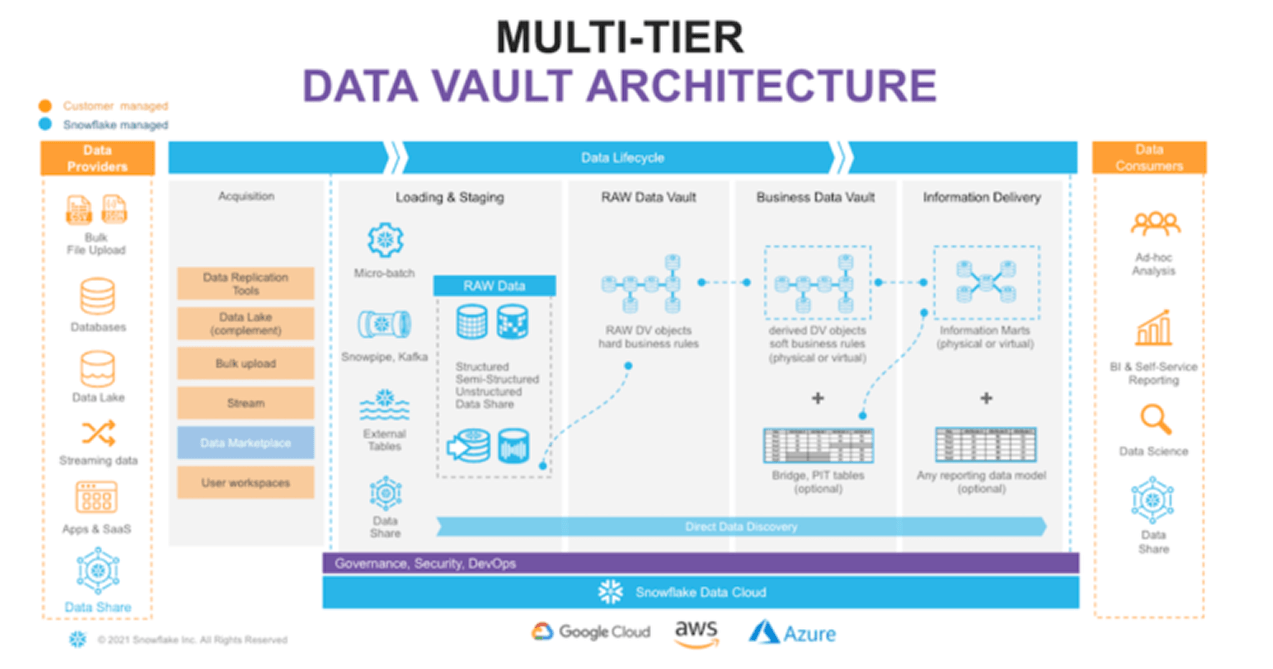 Hexalytics implements modern Data Vault architectures designed for scale, governance, and long-term adaptability. This approach enables enterprises to integrate diverse data sources, preserve full historical context, and maintain audit-ready lineage while supporting evolving analytics, reporting, and regulatory needs.