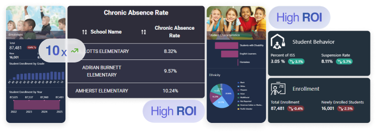 Track financial, operational, customer, and strategic metrics in real time. Access instant, always-fresh insights that help leadership identify trends, respond to changes faster, and drive performance across the entire organization.