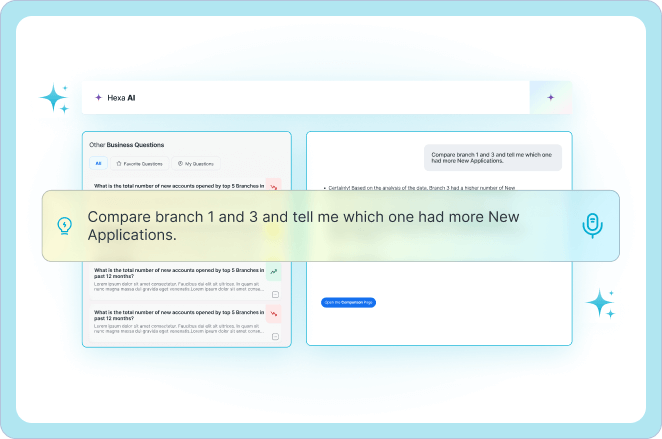 Enables rapid querying through natural language using Hexa AI—turning complex financial queries into instant insights for faster strategy refinement.