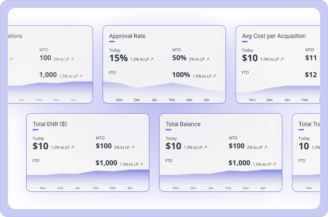 Provides real-time KPIs and performance dashboards tailored for leadership—enabling alignment across risk, revenue, and growth teams.