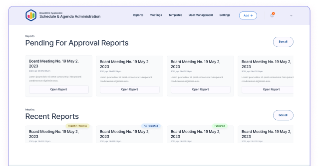 Take control of your board reporting process — from content creation to final approval and public publishing — all in one place.
