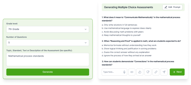 AI-generated lesson plans and aligned assessments ensure instructional consistency across classrooms, helping leadership monitor fidelity, close gaps, and maintain equity in instructional delivery.