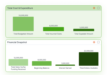 Enhance stakeholder trust and community engagement with simplified financial dashboards. Share curated, board-ready visuals showing how funds are allocated and used, without exposing sensitive data.
