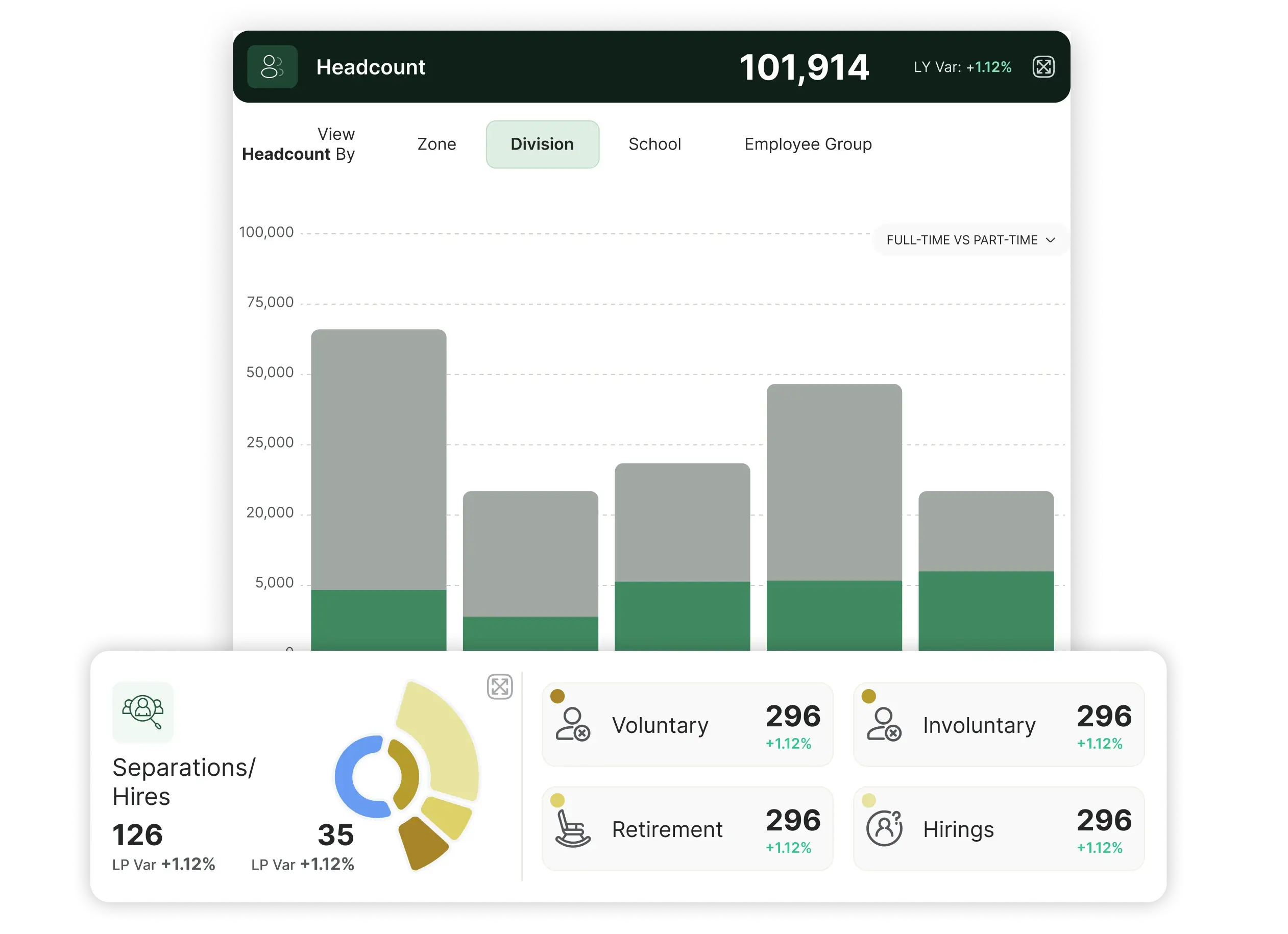 Instantly access headcount, open positions, and turnover trends. Get a live view of your staffing health across departments or schools—no spreadsheets or lag time.