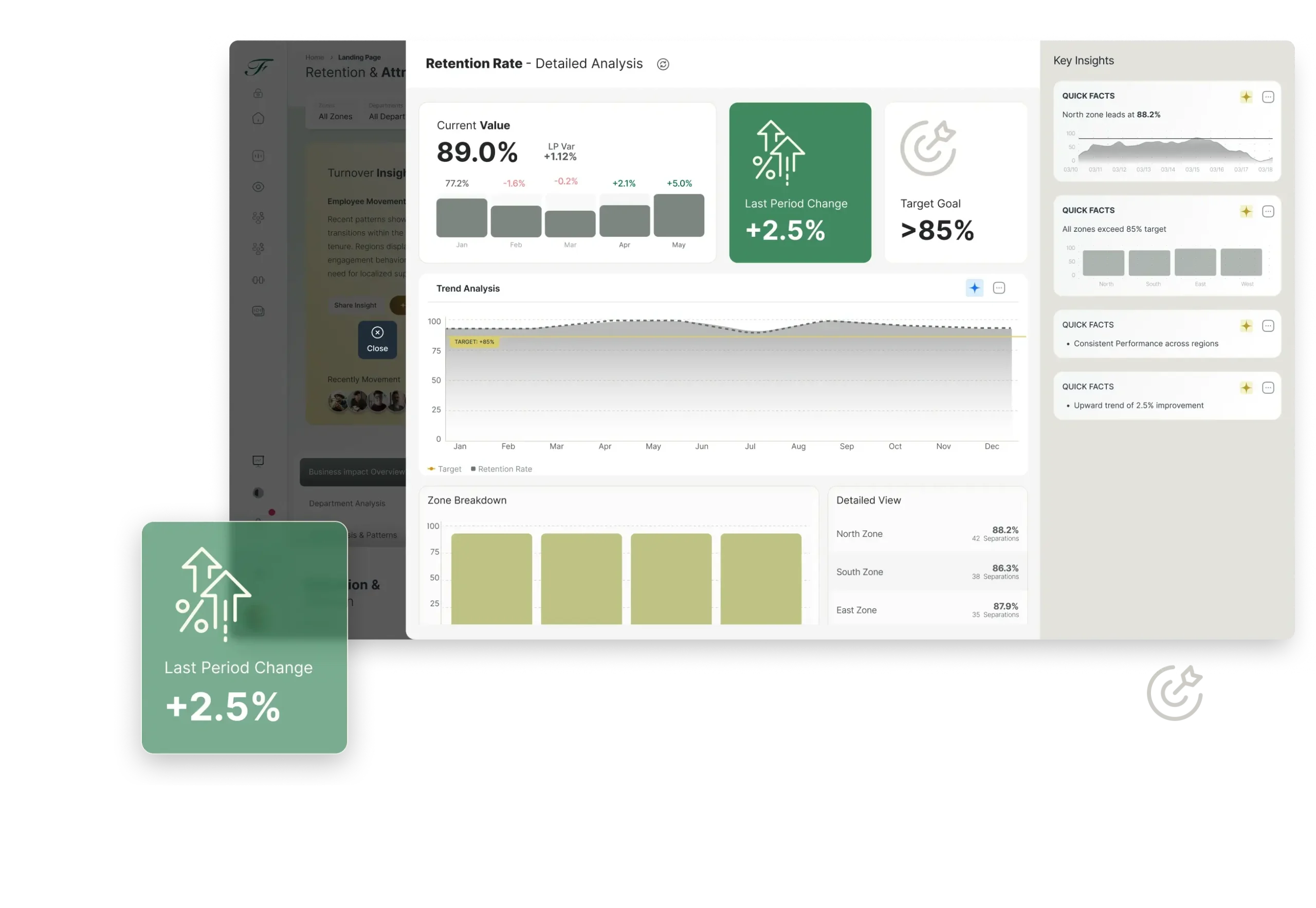 Our AI analytics spotlight turnover trends, risk areas, and demographic patterns so HR teams can take strategic action to improve retention.