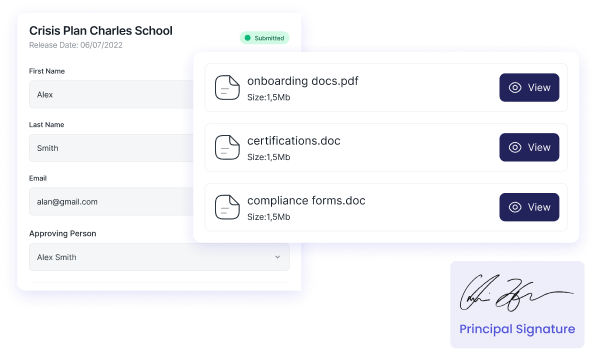 Digitally review, sign, and approve employee certifications, onboarding docs, and compliance forms streamlined for school administration.