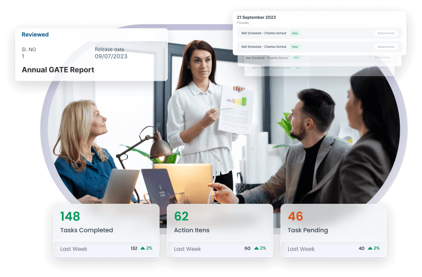 Get a live view of open tasks, due dates, and completed actions across schools or departments. Prioritize leadership tasks in one place.
